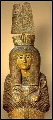 Spesso ha la pelle nera, ed alcuni pensano che potesse avere ascendenze nubiane, ma l’esame di quella che si ipotizza essere la sua mummia ha permesso di accertare che si trattava di una donna di razza bianca, alta m. 1,61 e morta più o meno a settant’anni.