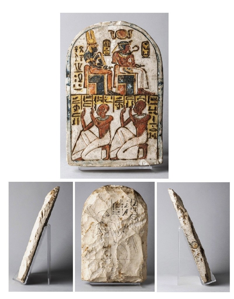 Questa stele ha una particolarità non rara, è decorata in entrambe le facce. Tale decorazione è stata effettuata in due periodi diversi. La scena rappresenta un personaggio con in mano un flabello. Il testo di tre colonne fornisce il nome: Flabellifero alla destra del re, Sovrintendente e Visir Hori, giustificato a Tebe. Immagini da scheda del Museo Egizio di Torino.