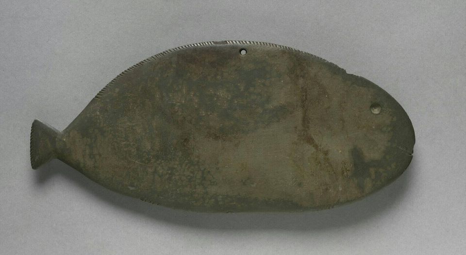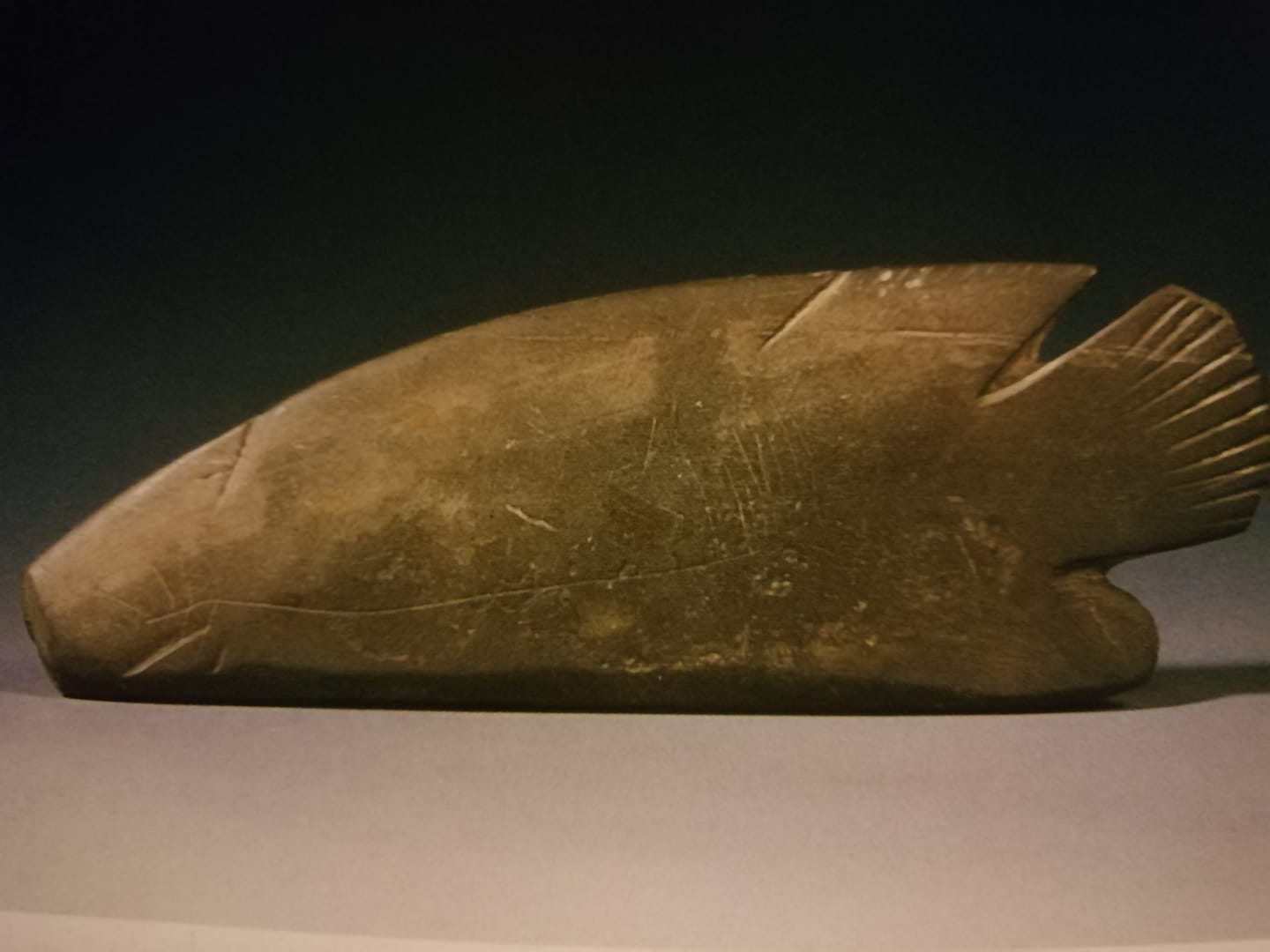 Tavolozza in grovacca a forma di pesce, per macinare il belletto.