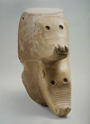 Capolavori predinastici ispirati alla fauna locale: statuine raffiguranti uno sciacallo, un elefantino ed una rana, ed un vaso decorato con giraffe e, sembra, uno scorpione.