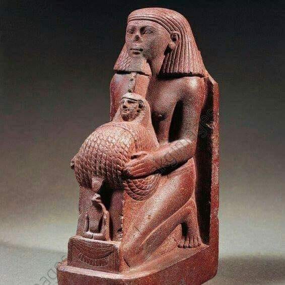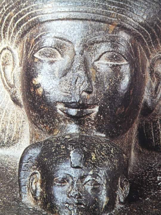 In queste statue che si rifanno ai modelli delle statue a cubo del Medio Regno, della principessa emerge la testa, fra le braccia del tutore.