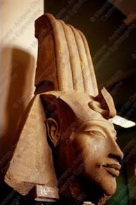 Diversa funzione, diversa raffigurazione: qui i tratti del faraone sono meno esasperati che nei colossi (che ormai erano stati tolti e sepolti per volontà del re)