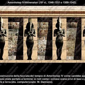 Nulla di nuovo in questo: le statue divine recavano sempre i segni della loro specificità (piume sul capo, corna di vacca, calotta, ecc.), cui si aggiungevano i tratti del faraone regnante; tuttavia, nella nuova concezione di Amenhotep IV prendeva forma una nuova idea: le divinità scomparivano, a parte Aton; ma anche questo, che parte da “Ra-Harakty nel suo nome di […] Aton”, perde i tratti antropomorfi, ieracocefali, e mantiene solo il disco solare con raggi e mani.