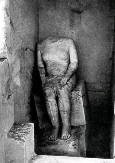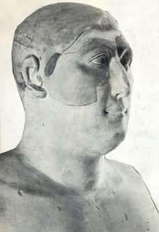 La statua, in pietra calcarea, lo rappresenta seduto e in grandezza naturale (1,55 cm di altezza), la sua testa era staccata dal corpo e i suoi occhi incastonati erano stati scavati dai profanatori di tombe. La statua raffigura un uomo dal volto severo e intelligente che mette in risalto le pieghe e le rotondità del suo corpo voluminoso in modo da sottolinearne l’importanza sociale.