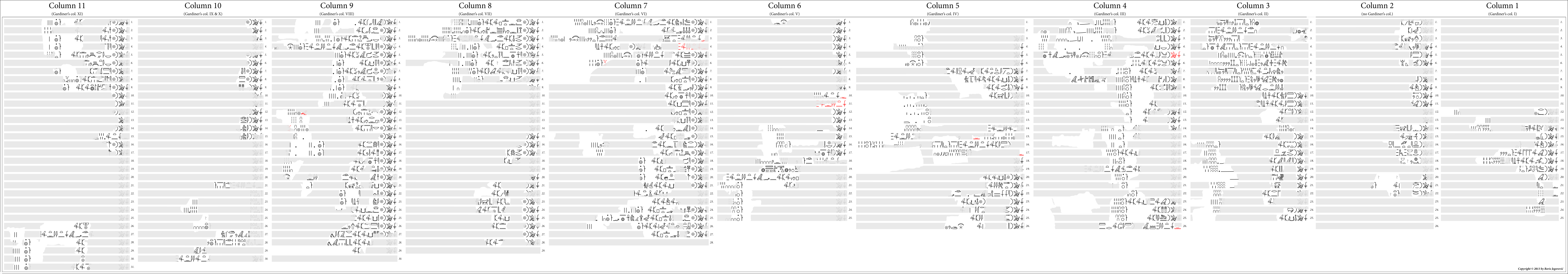 Alcune scritte sono in inchiostro rosso, per lo più i titoli delle sezioni e le somme degli anni di regno dei periodi; l’unico Faraone marcato in rosso è Djoser, a testimoniare l’importanza datagli più di mille anni dopo la sua morte.