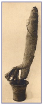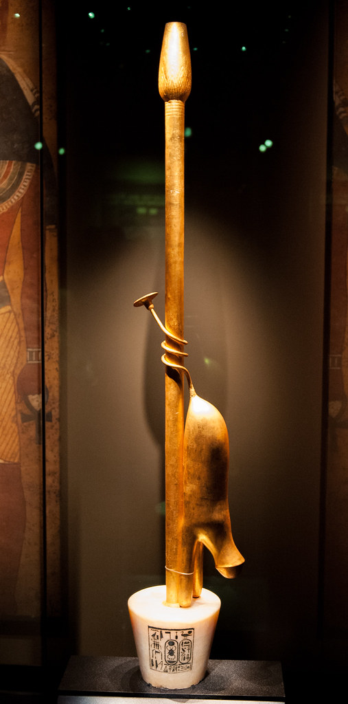 Pare ne esista un solo esemplare “reale” della XII Dinastia, in cui la pelle non è stata identificata ma si pensa sia di bovino. Gli esemplari rituali più noti sono probabilmente quelli in legno dorato della tomba di Tutankhamon.