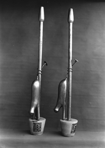 Due degli Imiut di Tutankhamon nelle fotografie originali di Burton; Carter li definisce “simboli di Anubis”