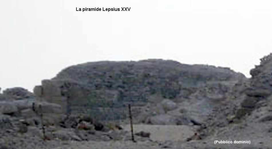 Sapevate che diverse costruzioni antico-egizie in passato non vennero neppure considerate piramidi? Alcune perché praticamente i lavori furono appena avviati, altre perché erano solo più ammassi di rovine da essere scambiate per resti di mastabe. Va inoltre detto che non per tutte quelle che sono state ritenute piramidi è stato possibile risalire al proprietario. Lepsius intraprese una campagna apposta per censire tutte le piramidi e ci ha lasciato una lista che ancor oggi è oggetto di consultazione. Abbiamo già parlato in altre occasioni dell’egittologo tedesco Karl Richard Lepsius e questa mi pare l’occasione di conoscerlo meglio. Lepsius, nacque a Naumburg, (Sassonia), nel 1810 e fu uno dei pionieri dell’egittologia. Laureato in archeologia a Lipsia, prese il dottorato con una ricerca sulle “tavole eugobine”. A Parigi frequentò le lezioni di Jean Letronne, uno dei primi allievi di Jean Francois Champollion, venne in Italia dove frequentò le lezioni di Rosellini a Pisa, ed infine fu titolare della cattedra di egittologia all’Università di Berlino oltre che direttore del Museo Egizio di Berlino. La sua opera maggiore sono i “Denkmäler aus Ägypten und Äthiopien” (1849-59). Nel 1842 Lepsius guidò una spedizione nel Basso Egitto dove esplorò tutte le piramidi esistenti. Compose una lista nella quale le numerò partendo da nord iniziando da Abu Rawash. In seguito venne dimostrato che alcune di queste strutture non erano vere piramidi, però tuttora la lista di Lepsius fornisce la base per la catalogazione delle piramidi egizie. Tra queste Lepsius notò, a poche decine di metri dalla piramide di Khentkaus II, due piccoli impianti piramidali, completamente in rovina, in assenza di elementi per essere più precisi, assegnò loro i numeri XXIV e XXV.