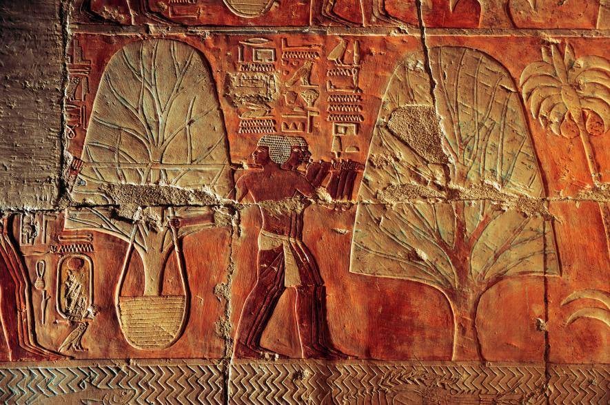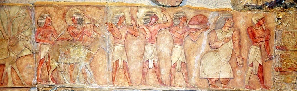 “Nel porto dell’incenso di Punt, per l’inviato del re e i suoi soldati fu allestita sulla riva del mare la tenda in cui potesse ricevere i capi di questo paese e offrire loro pane, birra, vino, carne, frutta e tutte le cose buone della terra d’Egitto, secondo quanto era stato ordinato dal faraone [vita, forza, salute] “