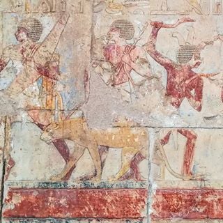 Si è ipotizzato che il paesaggio nel quale si colloca il villaggio rappresenti un tratto delle coste del Mar Rosso, ma Maspero sostenne che potesse riferirsi alle sponde di un fiume diverso dal Nilo che gli Egizi avrebbero imboccato via mare dalla foce, in quanto nel rilievo originale l’acqua era dipinta di verde, colore che indicava l’acqua salata od un fiume soggetto alla marea; inoltre alcuni esemplari di flora ivi raffigurati non crescono in riva al mare (es. il sicomoro odoroso, ritratto nella fotografia in basso) né alcuni animali presenti erano tipici del Nilo.