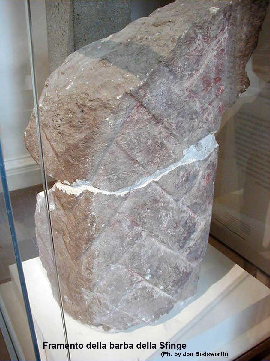 Con la Piramide di Cheope, la Sfinge presenta tanti e tali enigmi la cui soluzione è ancora lungi dall’essere trovata. Come abbiamo detto, in tempi a noi più vicini, fu Giovanni Battista Caviglia, esploratore, navigatore ed egittologo italiano, nato a Genova nel 1770, che nel 1816, rapito forse dal fascino del colosso accovacciato, iniziò una serie di scavi sul fronte della statua proprio sotto la testa, procedette fino a scoprire tutta la parte sottostante del monumento e delle zampe anteriori. Qui vennero rinvenuti i resti della barba e la testa dell’Ureo reale.