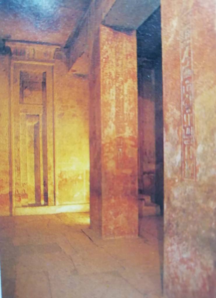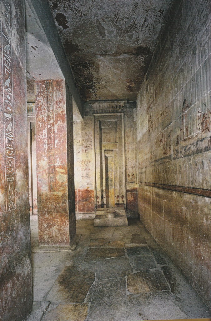 Sulla parete settentrionale del cortile si trova il primo serdab, mentre all’angolo sud-ovest uno strettissimo passaggio immette nel corridoio che conduce a due stanze splendidamente decorate con bassorilievi policromi.
