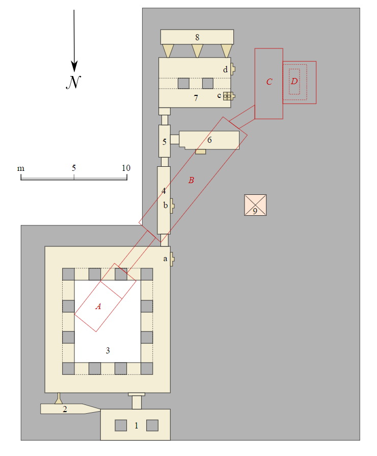 • 7: La cappella di Ti; c, d: false porte di Ti, allineate con la sua camera di sepoltura (C)