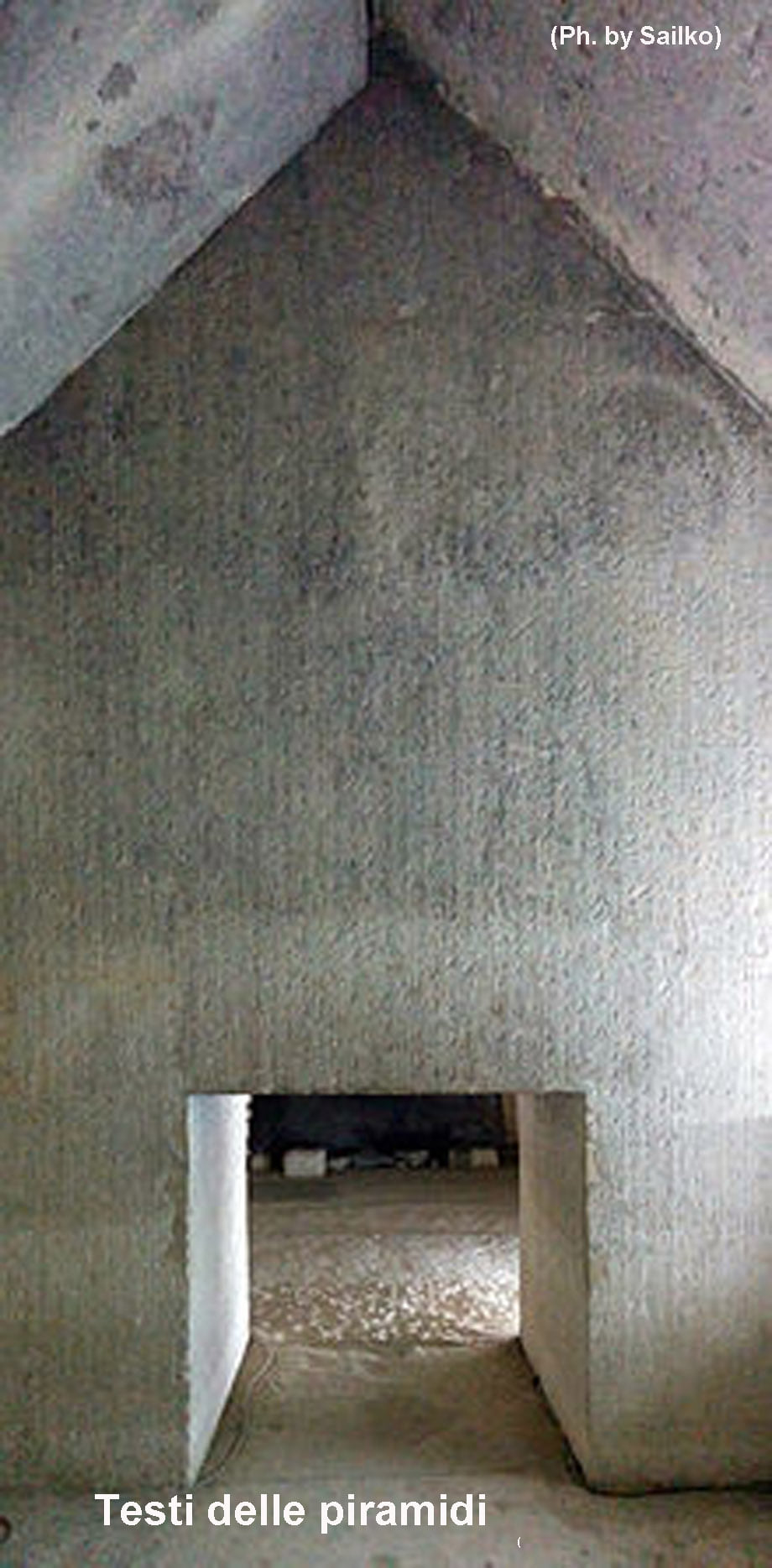 I Testi delle Piramidi descrivono come il faraone avrebbe potuto raggiungere gli dei, anche servendosi di rampe, gradini, scalinate o volando. <<…….Oh! Oh! Elevati tu Unas, ricevi la tua testa, riunisci le tue ossa, metti insieme queste carni, sposta la terra dalla tua carne……>>. Quando il sovrano avrà raggiunto Ra nei cieli con lui camminerà e si leverà al mattino: <<……. Unas appare in gloria al mattino associato al levarsi del sole……un dio che vive dei suoi padri, che si nutre delle sue madri……..>>.