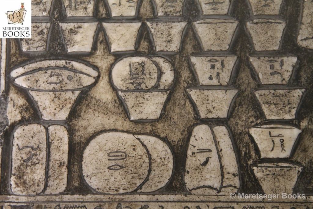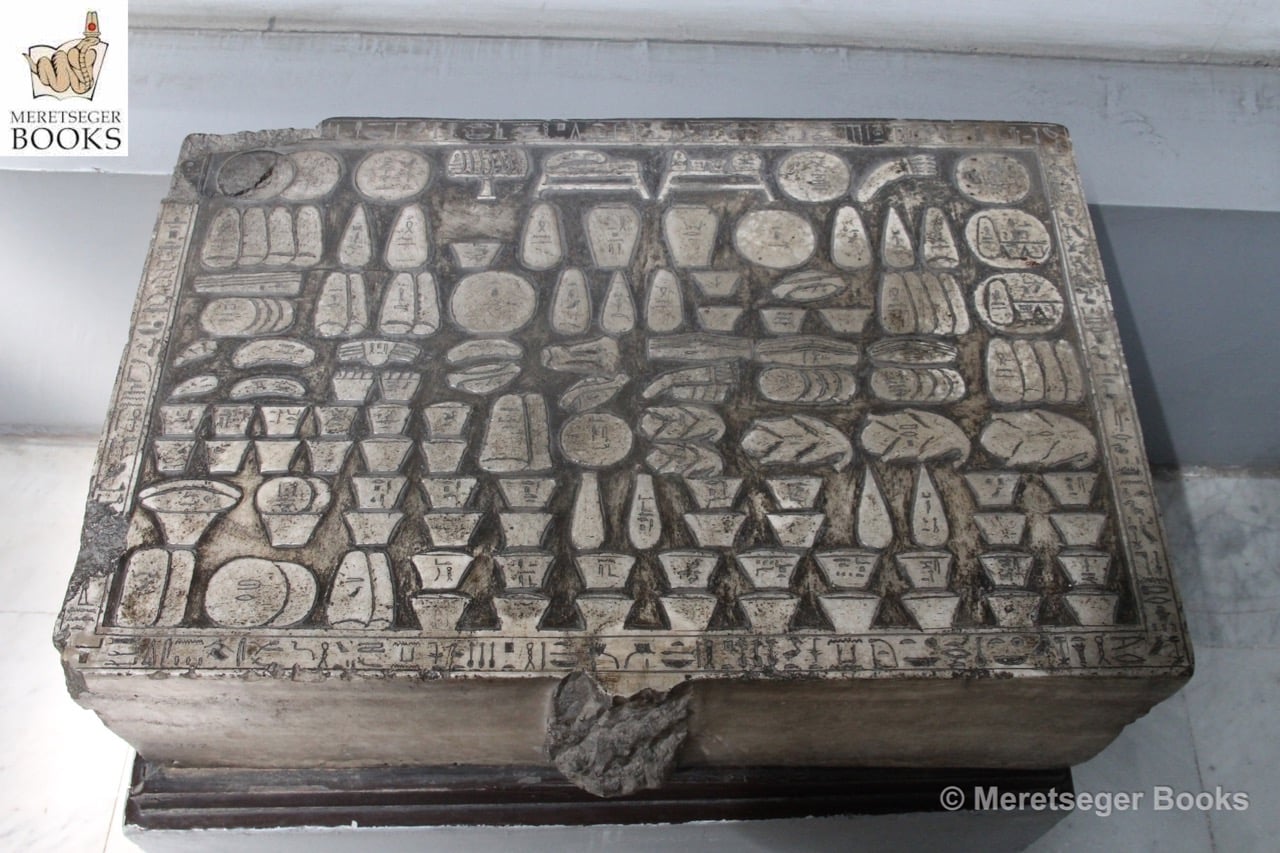 Si tratta di un reperto molto particolare, quasi un inventario, perché su di essa sono scolpite le immagini dei beni offerti; inoltre, curiosamente, a tutte le figure di volatili nell’iscrizione geroglifica sono state abrase le zampe.