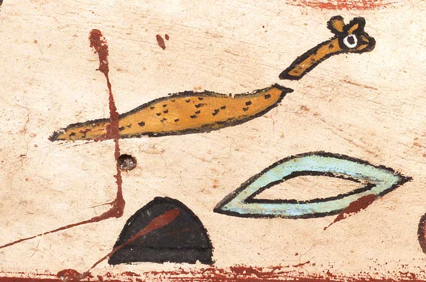 “Un’osservazione interessante riguarda il trattamento dei geroglifici. Sono scolpiti come segni normali, ma in seguito le zampe degli uccelli sono state abrase. Nella tredicesima dinastia, i geroglifici sugli oggetti posti nella camera della tomba erano spesso incompleti. Mancano le zampe degli uccelli, non vengono raffigurate le estremità dei serpenti e si evitano le figure umane. Il movimento delle creature viventi, era evidentemente visto come potenzialmente pericoloso per il defunto. La preparazione della sepoltura di Neferuptah, nella piramide di suo padre, avvenne evidentemente nel momento in cui furono introdotti questi geroglifici volutamente resi inoffensivi privandoli delle parti che consentono il movimento.”