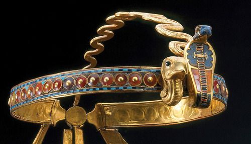 L’ureo flessibile era stato cucito, insieme a un avvoltoio d’oro, su un copricapo in lino del tipo khat o nemes, avvolto intorno alla testa della mummia di Tutankhamon con l’ausilio di una fascia in oro.