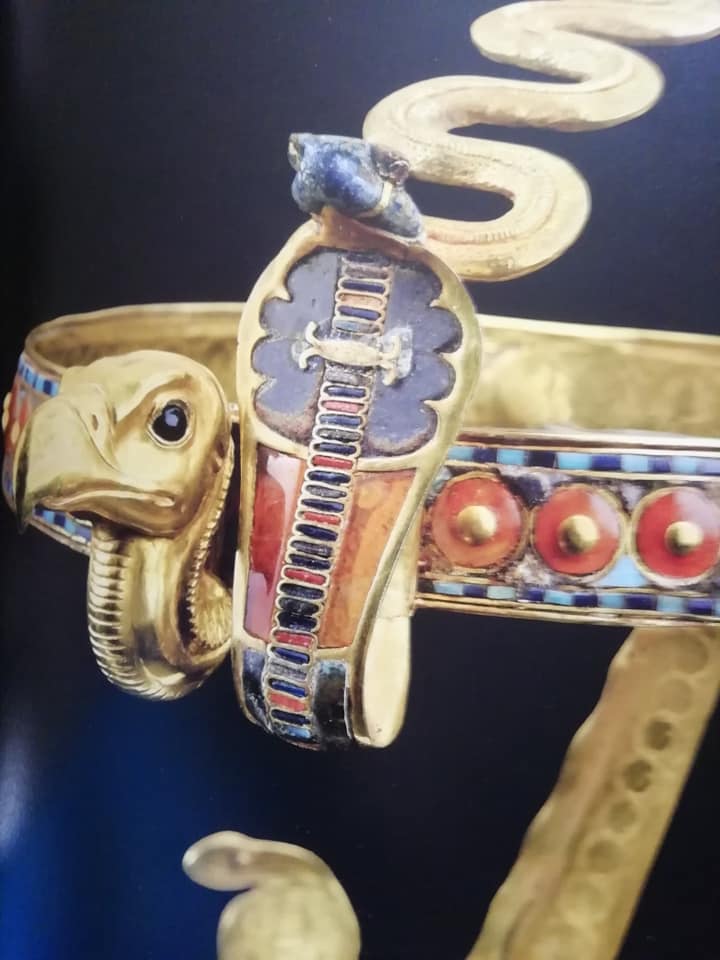 La testa dell’avvoltoio è in oro, mentre gli occhi sono intarsiati di ossidiana.