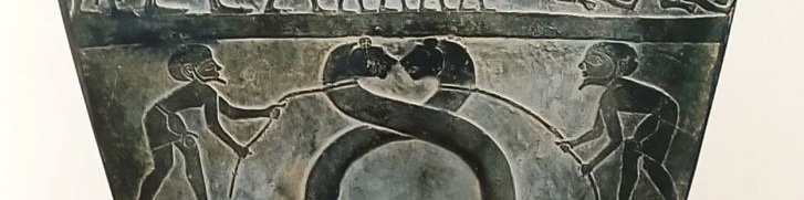 Nell’immagine particolare della paletta di Narmer risalente al XXXIII secolo a. C. raffigurante due serpopardi.