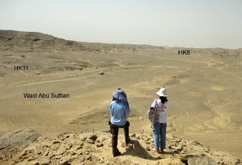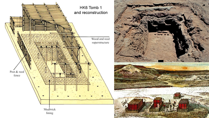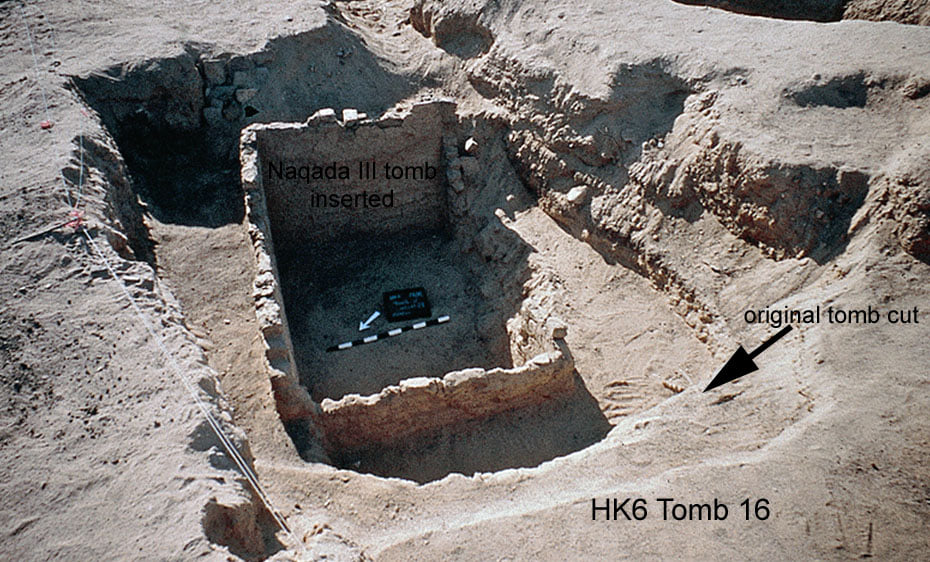 Gli scavi di Hoffman, iniziati nel 1986 nella grande necropoli ubicata nello Uadi el-Suffian, denominata Hk6, hanno restituito un’ampia sepoltura rettangolare, la Tomba 3 (metri 2,50×1,80x 1,80 di profondità), completamente depredata e due grandi fosse ovali (Tombe 6 e 9), contenenti vasi risalenti al periodo di transizione dall’amratiano al gerzeano (Naqada IIc-d; Adams 1996).