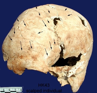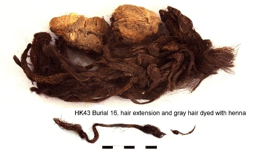 Lo conferma il corpo di una donna piuttosto anziana (Tomba 16), i cui capelli brizzolati erano stati tinti con l’henné e laddove le ciocche si presentavano diradate erano state integrate con “extension” annodate alla capigliatura naturale fino a creare un’acconciatura elaborata. Tra l’altro, la vanità non era solo limitata alle donne: è stato ritrovato persino una specie di parrucchino, realizzato con pelle di animale, che è stato integrato ai pochi capelli naturali di un uomo con evidenti problemi di calvizie, ed anche una barba posticcia molto ben curata. Più difficili da spiegare sono i segni da taglio trovati sulle vertebre del collo di 21 individui che in alcuni casi evidenziano una completa decapitazione. Le persone coinvolte sono sia uomini che donne ed hanno un’età compresa tra i 16 e i 65 anni. A cinque di questi soggetti, tutti giovani, fu anche praticato lo scalpo.
