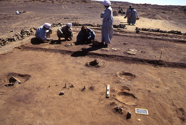 Gli scavi, effettuati in un’area di circa 1860 mq, hanno portato alla luce tombe disposte circolarmente intorno a spazi vuoti centrali dai quali sono stati recuperati frammenti di grandi vasi domestici di una tipologia non riscontrata nelle sepolture. Ciò fa ritenere che queste aree centrali fossero riservate a feste o rituali funerari. E’ presumibile, data la distanza ravvicinata, che i sepolcri fossero contrassegnati da un cumulo di sabba o pietre, sebbene non ne resti alcuna traccia. La sabbia calda e asciutta ha permesso un’eccezionale conservazione organica di stuoie e cesti, nonché di capelli, ossa tessuti corporei, alimenti e contenuto intestinale; tutto ciò ha fornito una serie di informazioni senza precedenti su dieta, livelli nutrizionali, salute e stile di vita dell’epoca. Nel periodo di massimo sviluppo della ricerca sul predinastico iniziata agli inizi XX secolo, si stima che siano stati esplorati più di 65 cimiteri e scavate oltre 20.000 tombe, ma a causa dello scarso interesse e delle limitate capacità di indagine del tempo, i materiali organici furono sistematicamente ignorati e i reperti ossei non adeguatamente analizzati. Lo studio dei reperti recuperati da questa necropoli, permette di gettare nuova luce sull’argomento.