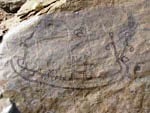In breve, l’intricato intaglio su un lato mostra file di animali così come si vede su altri manici di coltello, mentre sull’altro lato, una fila di potenti animali, capeggiati da un grande scorpione, circonda due registri di barche. E’ rimarchevole la presenza dello scorpione (un animale che era particolarmente tenuto in considerazione a Hierakonpolis) nell’intaglio dell’avorio e nelle figurine, in quanto non è documentata, al momento, su altre impugnature del genere. È quindi probabile che questo manico sia stato creato proprio nei laboratori del sito. In contrasto con il rilievo modellato della maggior parte di oggetti di questo tipo, lo stile dell’intaglio è piuttosto piatto: i disegni qui sono stati incisi e lo sfondo tagliato via, con dettagli aggiunti solo tramite incisioni e colpetti (Immagini n. 9-10).