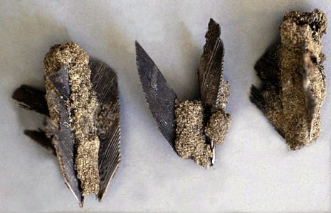 Inizialmente scambiate per capelli, le piume di struzzo, incontrate sullo stesso livello, potrebbero rappresentare un’altra novità. Le piume (per lo più marroni ed una bianca) sono state trovate in fasci di tre, appena distanziati l’uno dall’altro e tutti orientati nella stessa direzione. Ciò fa pensare che facessero parte di un ventaglio di piume di struzzo, forse il più antico di cui si abbia conoscenza nell’Antico Egitto (Immagine n.7).