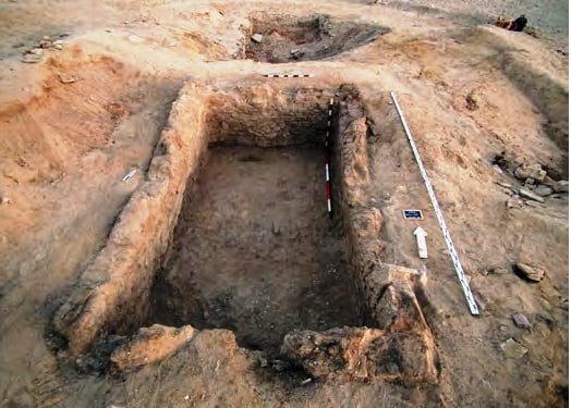 A destra: la Tomba 26, solo leggermente più tarda della Tomba 23, aveva anche una sovrastruttura e un muro di cinta. Al suo interno molti oggetti esotici che attestano una vasta gamma di commerci con l’estero.