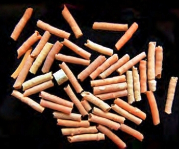 Tuttavia, l’ingente quantità e la limitata gamma di forme inducevano, fin dall’inizio, a una spiegazione diversa. L’insieme era composto, per la stragrande maggioranza, da piccole ciotole rosse lucidate, una sorta di piattini, per lo più di circa 12 cm. di diametro. Quasi tutte hanno il centro consumato ed alcune presentano tracce di bruciatura intorno al bordo: facile dedurre che furono utilizzate come lampade o brucia – incenso.