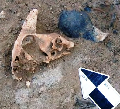 Tra le ceramiche erano presenti le ossa di una capra femmina adulta, che era stata sepolta intera. Mentre la capra era concentrata soprattutto a est, i resti dei due giovani proprietari della tomba (rispettivamente di circa 8 e tra gli 11 e i 14 anni) erano purtroppo sparsi in tutto il riempimento. Questa combinazione di capre adulte ed esseri umani, per noi, si è rivelata una novità, ma ben si accorda con il ruolo svolto dagli animali domestici (piuttosto che da quelli selvatici) caratteristico di questa parte della necropoli (Immagine n. 5).
