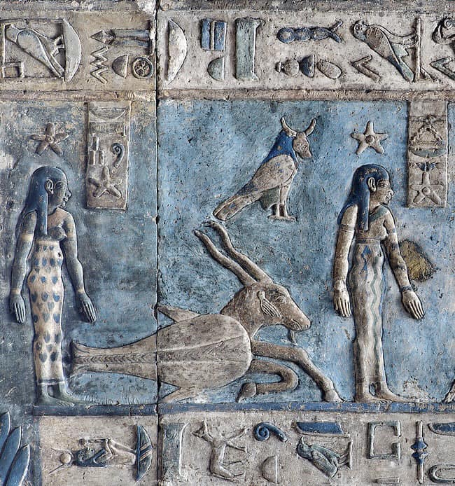 Il tempio di Hathor a Dendera è famoso per I bellissimi colori, ancora più evidenti dopo il restauro – e per il soffitto astronomico.