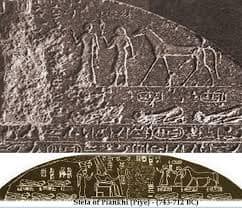 Fatto sta che Piye dopo vent’anni trascorsi nelle sua amata e pacifica Nubia si mosse. Abbiamo la fortuna di seguire le vicende grazie alla grande stele fatta incidere dal sovrano e ritrovata a Gebel Barkal. La stele racconta con parole dettate dal re, come il Delta fosse caduto nelle mani di Tefnakht e come proseguisse la sua avanzata verso sud con un esercito numeroso. I principi fedeli a Piye mandavano messaggi ogni giorno aggiornandolo sul peggiorare della situazione; anche Nemrod principe di Ermopoli in Medio Egitto, era passato dalla parte di Tefnakht.