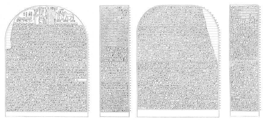 I principi della teologia menfita sono esposti sulla PIETRA DI SHABAKA, scritta in corsivo geroglifico. Tuttavia, il prologo del testo precisa che si tratta della copia di un documento più antico, trascritto sulla pietra per essere conservato. L’utilizzo di un linguaggio arcaico fa supporre che la composizione del testo risalga all’antico regno, un’epoca della storia egizia che vide l’affermarsi di tre importanti centri religiosi: Eliopoli, Menfi ed Ermopoli.