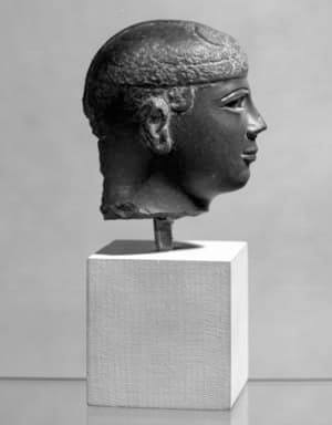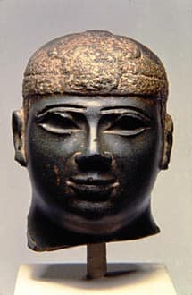 Statua di Tanwetamani, re di Kush in granito nero Questa statua fa parte di una serie di re di Kush in stile egiziano arcaico. Le statue furono rotte durante un’incursione egiziana nel 591 a.C. circa e successivamente seppellite con cura. Fotografia per gentile concessione della missione archeologica svizzera franco-sudanese di Kerma/Dukki Gel (Sudan).