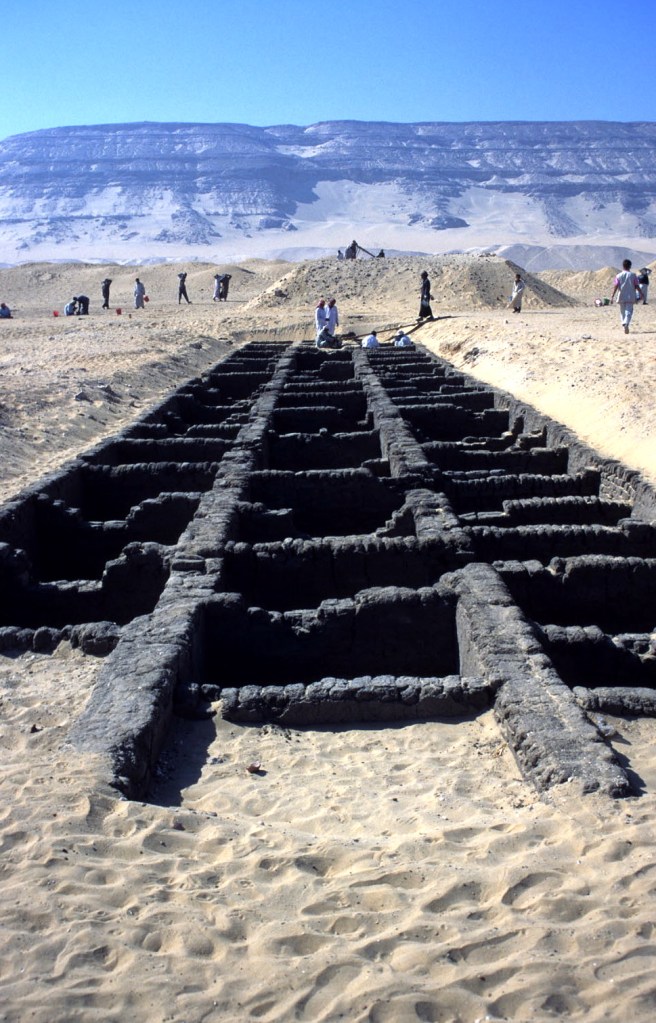 Nel 1967, ancora ad Abydos, David O’Connor (n. 1938, egittologo australiano), quasi proseguendo gli scavi nelle stesse aree di Petrie, rinvenne 14 navi alcune lunghe anche 27 m, perfettamente atte a navigare e quindi non simulacri[17]. Ciò fece supporre che fosse prassi, per l’epoca, seppellire i re con un effettivo corredo di manufatti e suppellettili effettivamente utilizzati in vita; ciò accentuò l’idea dei sacrifici umani così come gli scheletri di alcuni giovani leoni. Come aveva regnato sulla terra, il re doveva perciò proseguire a regnare nell’aldilà e, per far questo, doveva averne gli strumenti che comprendevano, ovviamente, navi per risalire il Nilo celeste (14), funzionari per governare (35), regine (3) per il proprio piacere e figli/e (1).
