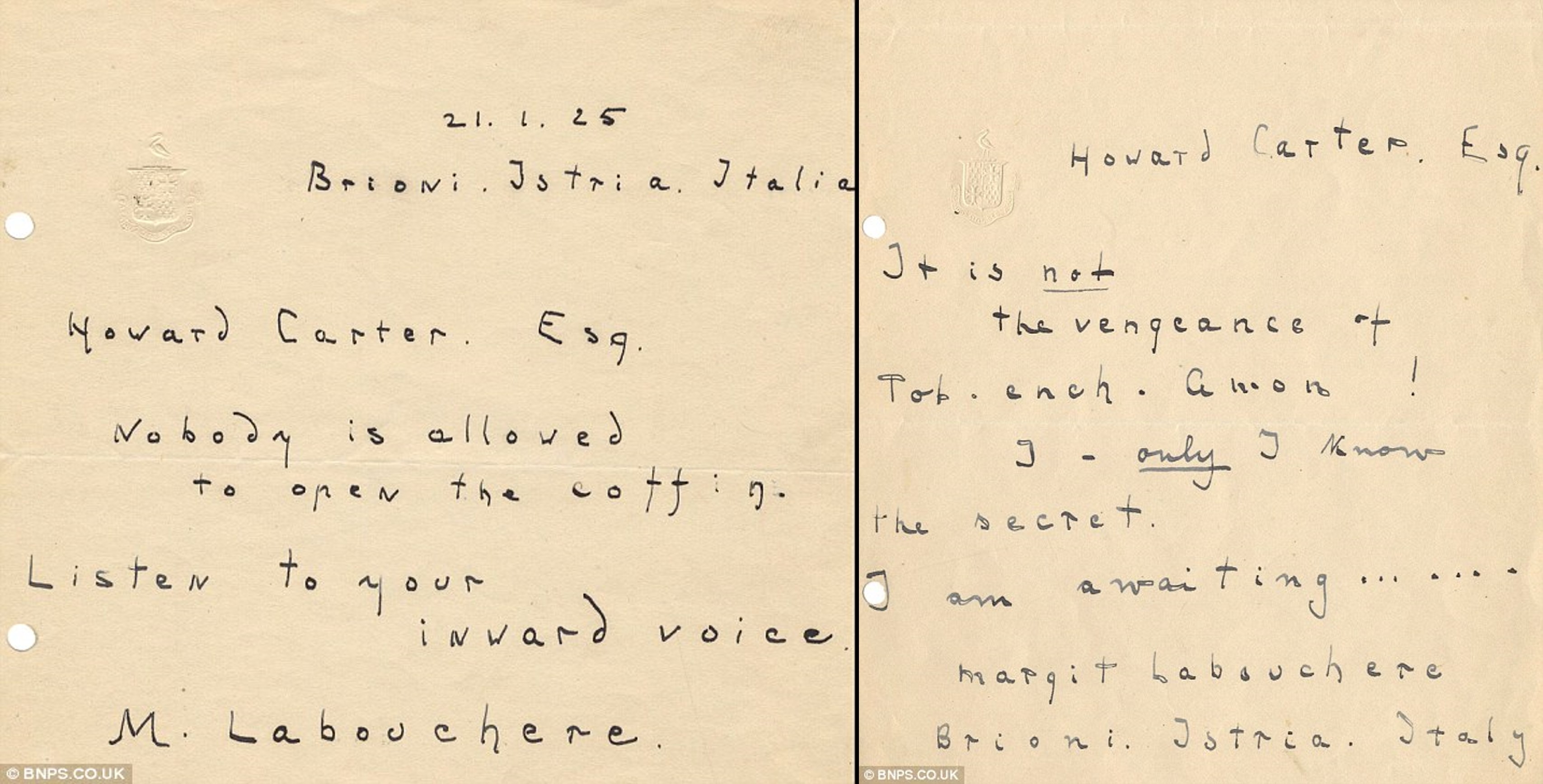 Non lo sapremo mai. Carnarvon chiude la lettera chiedendo a Carter di incontrarsi da soli. Non succederà, non come Carnarvon vorrebbe.