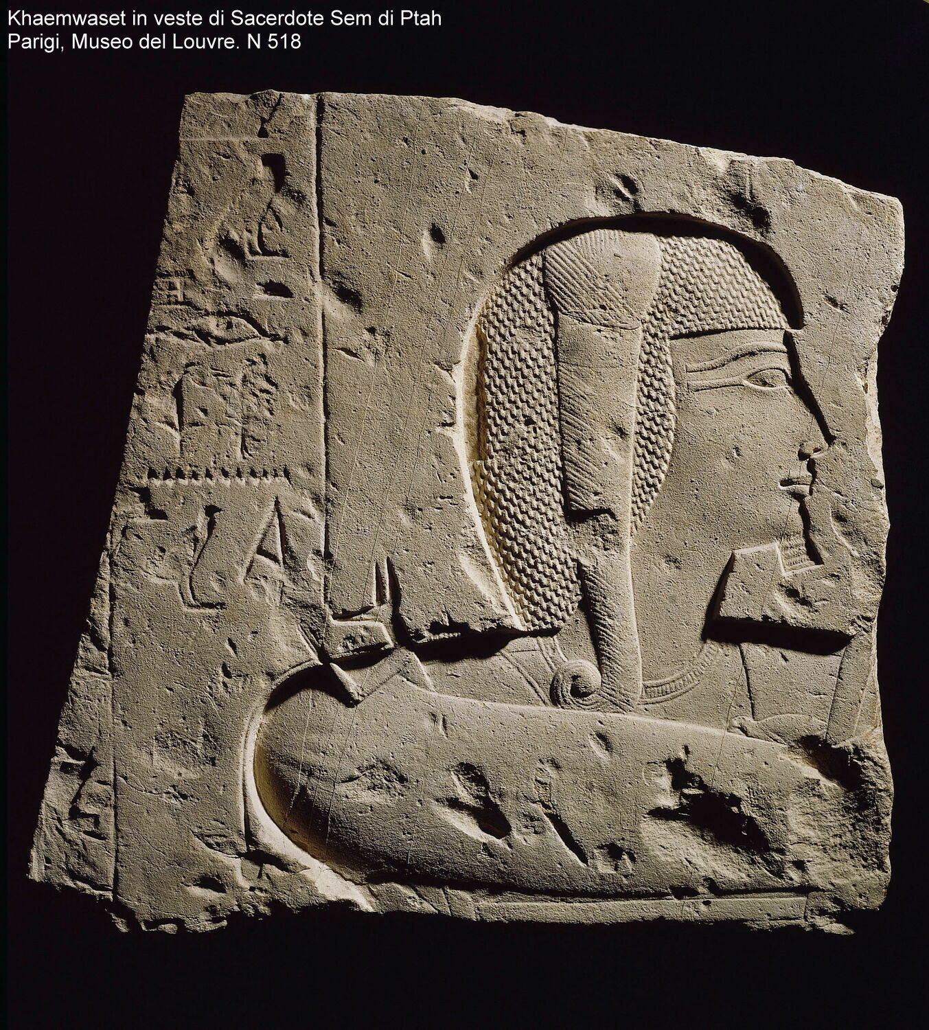 Fra i numerosi figli di Ramses II che ricoprivano alte cariche, deve essere senz’altro menzionato Khaemwaset, quarto figlio del Grande e secondo figlio della Grande Sposa Reale Isetnofret. Egli fu sacerdote di Ptah a Menfi e acquisì una solida reputazione come studioso ed esperto in arti magiche che sarebbe durata fino all’epoca romana.