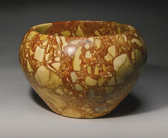 Vaso in breccia rossa, periodo predinastico (Nagada II)/1° dinastia, 3500-2900 a.C. circa