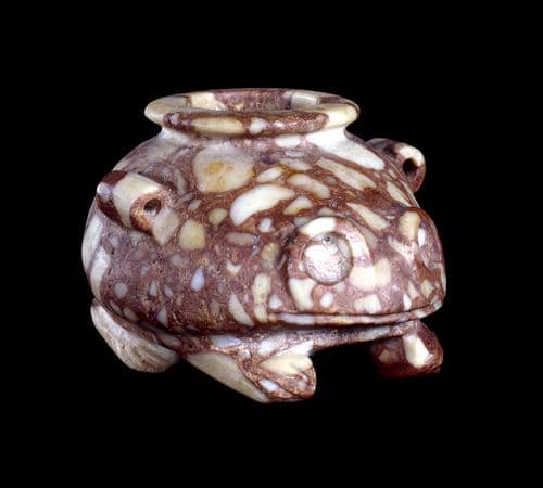 Poiché un gran numero di giovani rane poteva essere visto sulle rive del fiume mentre l’annuale inondazione del Nilo si ritirava, la rana ha una risonanza particolare come simbolo di fertilità e rinascita. Per questo motivo la dea Heket, che proteggeva le partorienti, era raffigurata come una rana o una donna dalla testa di rana. Sembra forte l’associazione delle rane con la rigenerazione, tanto che alcuni hanno ipotizzato che piccoli vasetti a forma di rana come questo fossero usati per contenere preziosi liquidi o lozioni necessarie soprattutto durante il parto.