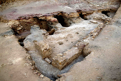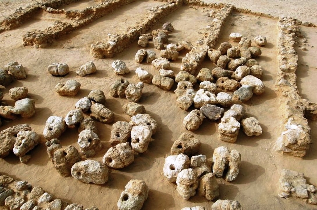 Sulla riva nord del wadi che circonda le gallerie G1-G17, numerosi elementi rinvenuti in superficie già dalla prima campagna di scavi lasciavano supporre la presenza di forni destinati alla cottura della produzione locale di ceramiche. Due sondaggi hanno permesso di portare alla luce due forni in cavità protette sia da improvvise inondazioni sia dai venti dominanti provenienti dal nord. Le due strutture (denominate 3047 e 3052) si sono conservate al livello della camera inferiore di riscaldamento e presentano caratteristiche particolari (camera di riscaldamento ricavata nello strato roccioso inferiore, involucro dell’infrastruttura realizzato con blocchi di calcare) che furono già evidenziate nei due forni (1022-1030) rinvenuti nel 2012 sotto le gallerie G7-G17. Questi due nuovi esemplari presentano, però, dimensioni sensibilmente differenti. Il più piccolo (3047) a est, misura 2,60×1,80 metri, mentre il maggiore (3052) è circa 4 metri di lunghezza per 2,60 metri di larghezza, con la camera di riscaldamento inferiore avente un diametro di circa 2 metri.