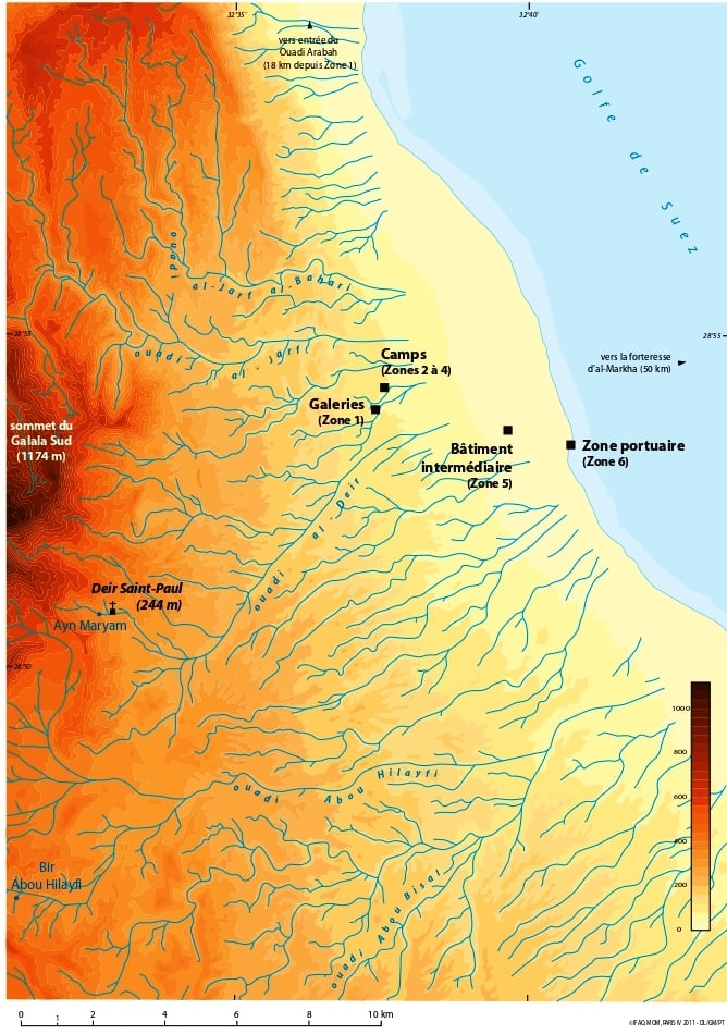Appare, quindi, inequivocabile l’enorme ruolo che ha ricoperto nel suo relativamente breve periodo di utilizzo. Situato sulla costa occidentale del golfo di Suez, a circa 100 chilometri a sud di Ayn Soukhna, (l’altro punto di ancoraggio faraonico sul mar Rosso), fu, come oramai sembra accertato, il porto di elezione, durante il regno di Cheope, per raggiungere le miniere di turchese e rame nel sud-ovest del Sinai. E’ ubicato di fronte ad un punto di sbarco contemporaneo identificato recentemente a El-Markha, sulla riva orientale del Golfo, separato da un braccio di mare largo meno di 50 chilometri. Ad ovest si collega alla valle di Nilo, all’incirca alla latitudine di Meidum (ove fu edificata la prima piramide di Snefru, il fondatore della IV Dinastia), attraverso un reticolo di piste che attraversano il Wadi Araba. Una delle ragioni principali della scelta di questo particolare punto del litorale fu senza dubbio la presenza di una importante fonte d’acqua dolce (oggi inclusa nel monastero di San Paolo, a circa 10 chilometri dal sito), che permetteva di rifornire le spedizioni che vi transitavano. Le vestigia, si estendono per 6 Km. da est ad ovest, dal primo contrafforte montuoso del deserto orientale alle rive del mar Rosso.