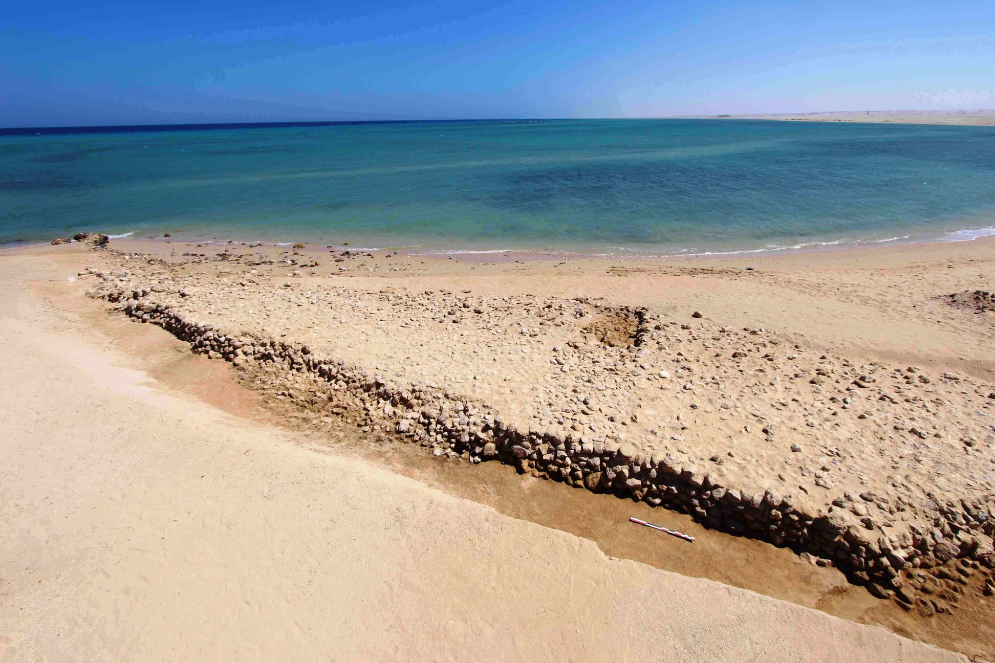 Le indagini delle strutture portuali si sono concentrate, nel 2013-2014, su un’area situata a circa 200 metri dalla costa. In questo settore erano visibili in superficie numerose tracce di muratura, la cui funzione non era chiara, e un’ancora di imbarcazione. Lo scavo sistematico, operato su una superficie di circa 1000 mq. ha fornito prove di due occupazione successive, non necessariamente lontane nel tempo ed entrambe databili all’inizio dell’Antico Regno.