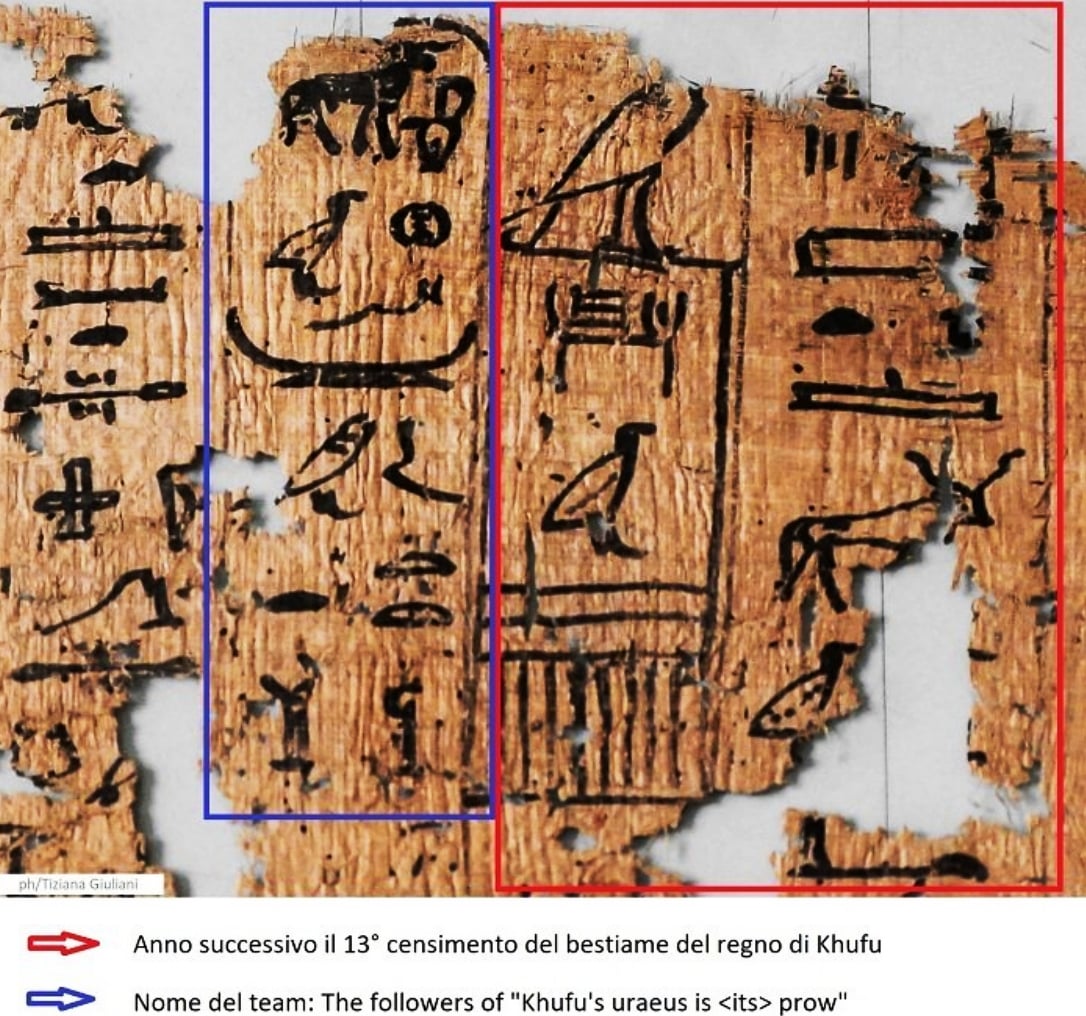 Nel 2013 (e siamo alla terza stagione di scavo) si è imbattuto in qualcosa di stupefacente: interi rotoli di papiro, alcuni dei quali lunghi qualche metro e ancora relativamente intatti, vergati in geroglifico, oltre che in ieratico, scritti da uomini che parteciparono alla costruzione della Grande Piramide di Khufu. Tra i papiri c’era il diario di un funzionario di nome Merer che guidava un equipaggio di circa 200 uomini che viaggiava da un capo all’altro dell’Egitto raccogliendo e consegnando merci di vari tipo. In un vero e proprio giornale di bordo, redatto ad intervalli di mezza giornata, menziona di essersi fermato a Tura, una città famosa per le sue cave di calcare, caricando la sua barca con la pregiata pietra per consegnarla a Giza. In effetti, Merer fa questa segnalazione al nobile Ankhaf, noto per essere il fratellastro di Khufu ed ora sicuramente identificato come uno dei maggiori responsabili della costruzione della Grande Piramide.
