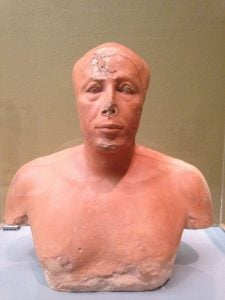 A sinistra: Wadi el-Jarf, un’ancora in pietra. Foto Pierre Tallet. A destra: busto del Principe e Visir Ankhhaf, nonchè fratellastro del faraone Khufu. Museum of Fine Arts of Boston.