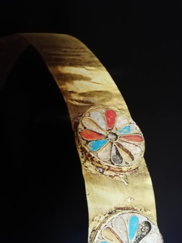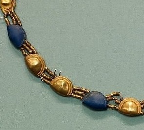 Infine abbiamo la cintura composta da elementi in oro e lapislazzuli che rappresentano conchiglie stilizzate simbolo di fertilità. Purtroppo non ho trovato una fotografia migliore.