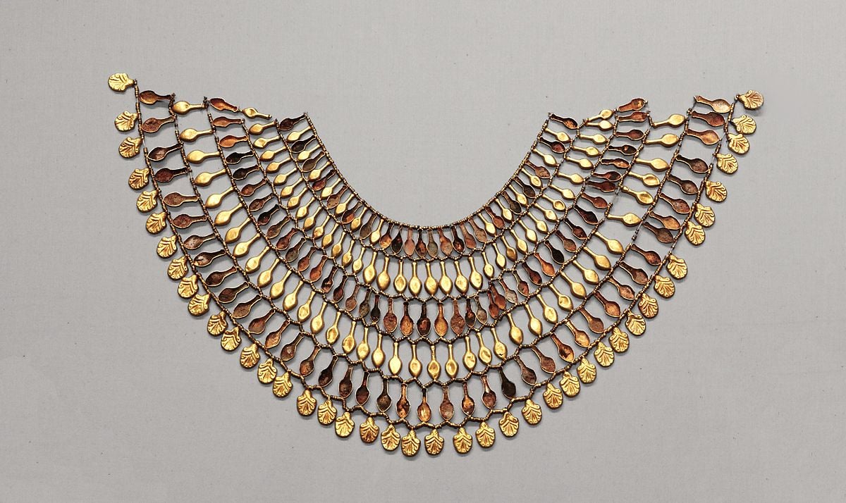 Anche le tre mogli straniere di Thutmose III seguivano la moda di corte: nella loro tomba furono rinvenuti questi due collari, oggi custoditi al MET di New York.