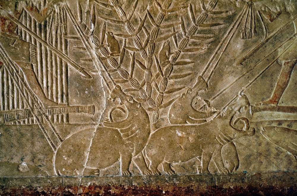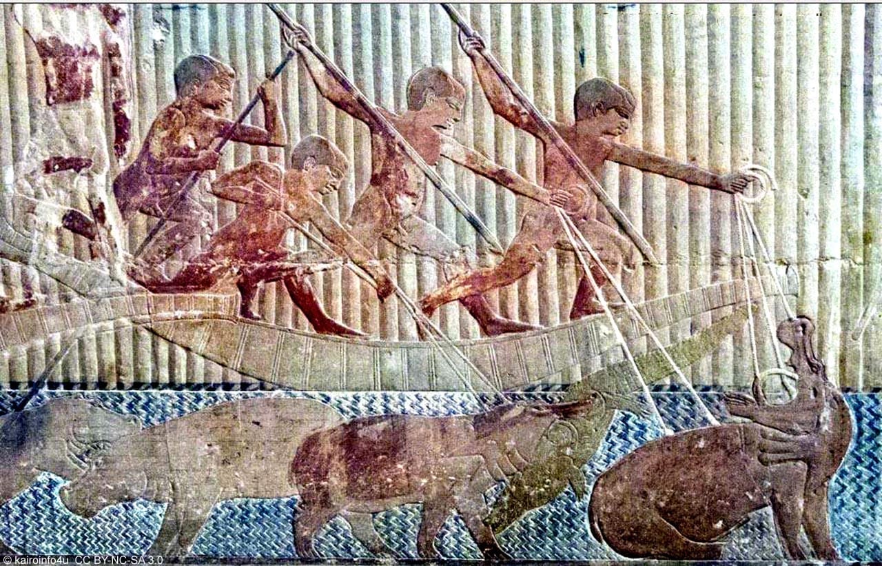 La rappresentazione più famosa della caccia all’ippopotamo si trova nella mastaba di Ti a Sakkara.