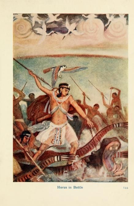 Poi prese del filo e fece una corda, e prese una libbra di rame e la fuse in un arpione, vi legò la corda e lo gettò nell’acqua dove Horus e Seth si erano tuffati. E l’arpione colpì la maestà di suo figlio Horus. E Horus gridò ad alta voce, dicendo: “Vieni a me, madre Iside, madre mia! Chiama il tuo arpione affinché esca da me. Io sono Horus, il figlio di Iside”.