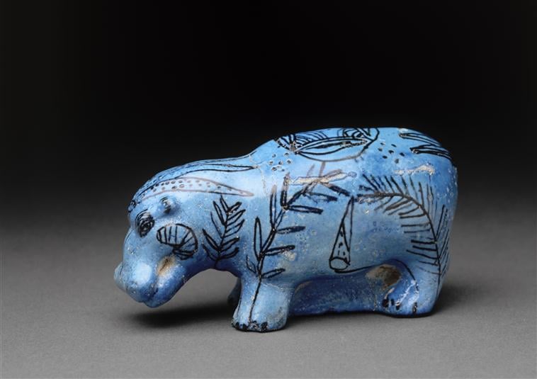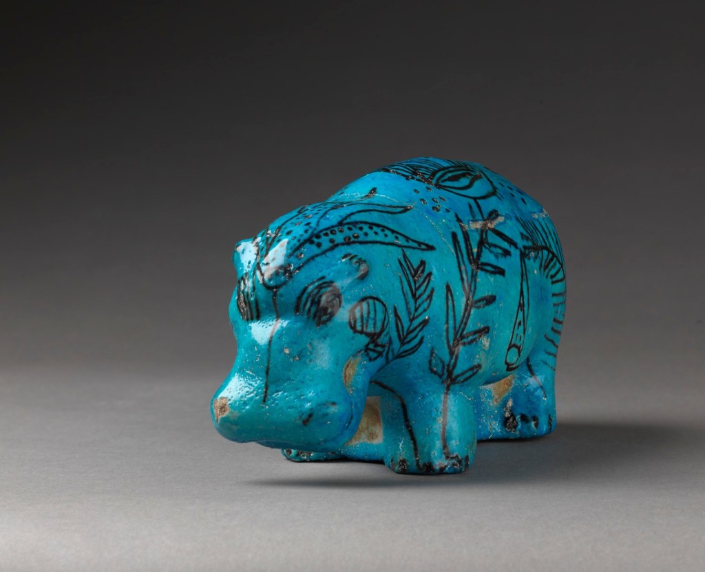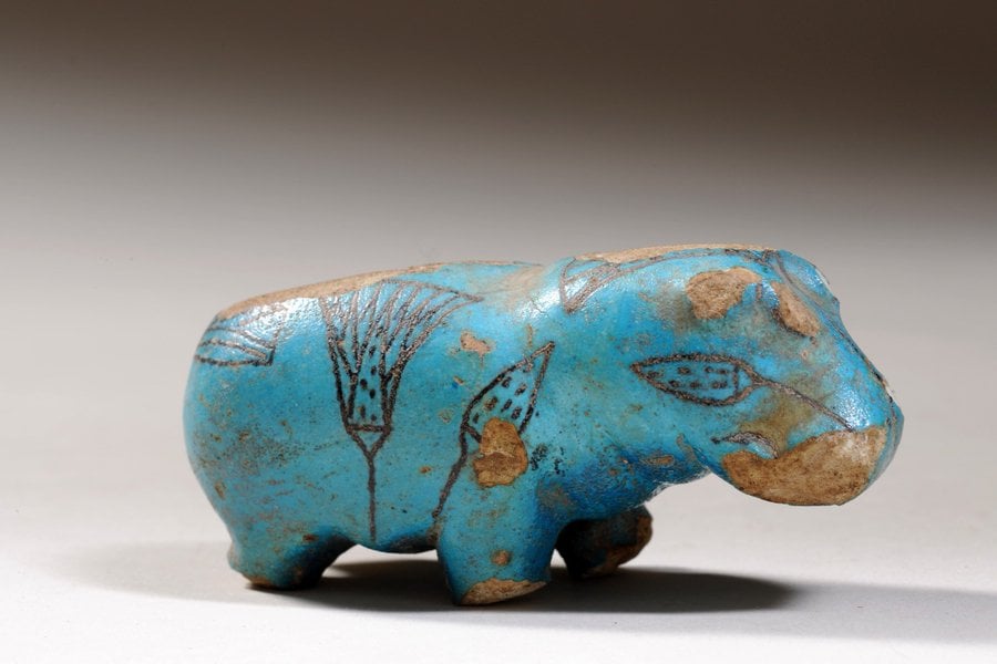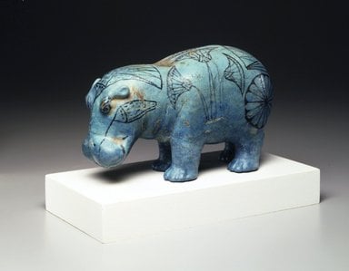 Le statuette in maiolica raffiguranti l’ippopotamo, di dimensioni variabili tra i 9 ed i 23 centimetri di lunghezza, vennero realizzate soprattutto nel Medio Regno e nel secondo periodo intermedio per essere collocate nelle tombe; poiché gli egizi temevano il gigantesco pachiderma e credevano che la sua raffigurazione potesse magicamente animarsi e costituire una minaccia, probabilmente ne rompevano le zampe per eliminarne il potenziale distruttivo e talvolta disegnavano sulla sua schiena delle bande trasversali che rappresentavano corde destinate ad imbrigliarne la pericolosità.